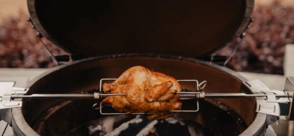 Experience smoked indulgence with this rotisserie-grilled chicken recipe. Coated in a sweet blend of BBQ seasoning along with sprigs of rosemary and thyme and cloves of garlic, the chicken is roasted to perfection on the Big Green Egg using the rotisserie attachment. View full recipe here: https://biggreenegg.com/blogs/recipes/butter-basted-rotisserie-chicken